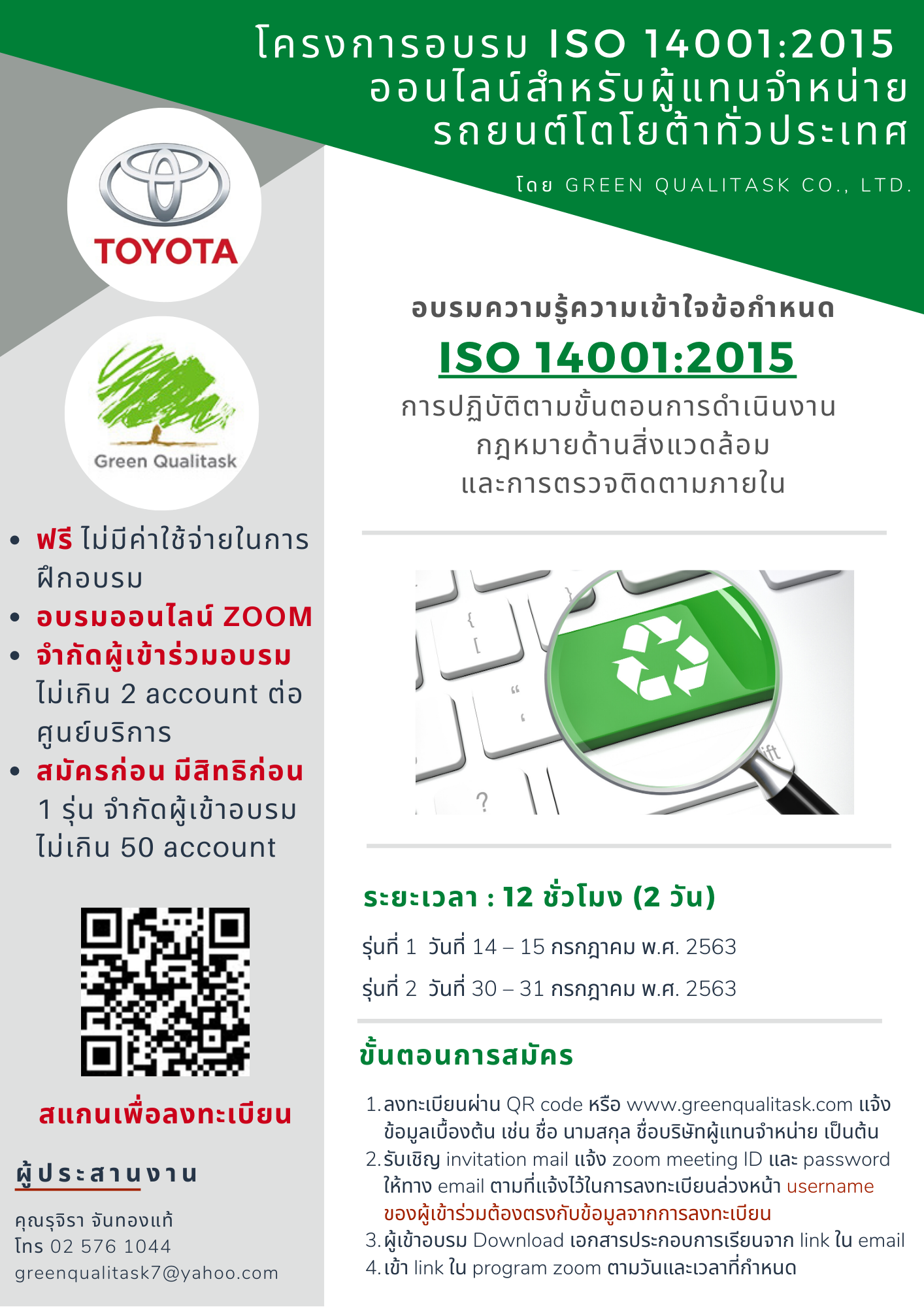 โครงการอบรม ISO 14001:2015 ออนไลน์สำหรับผู้แทนจำหน่ายโตโยต้า