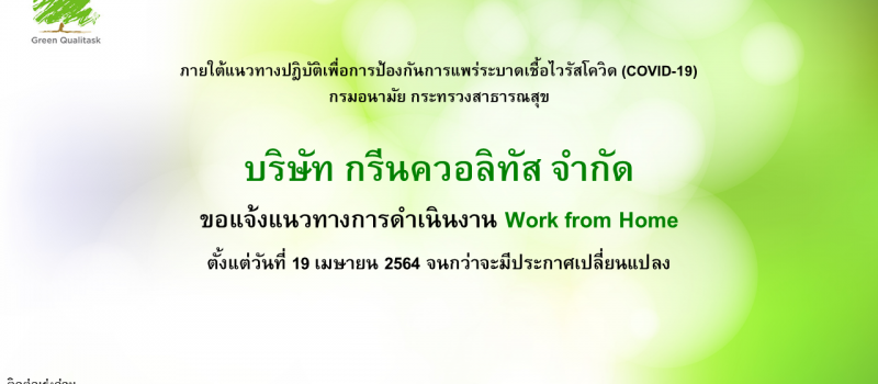 บริษัท กรีนควอลิทัส จำกัด ขอแจ้งการ Work from Home